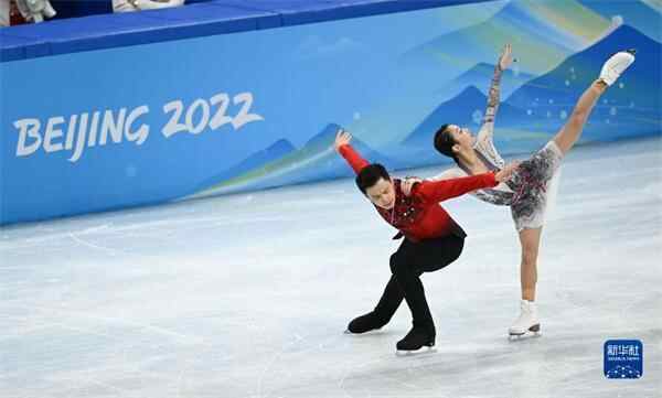 2月7日,中国选手彭程(右)、金杨在比赛中。当日,北京2022年冬奥会花样滑冰团体赛双人滑自由滑比赛在首都体育馆举行。新华社记者 李一博 摄