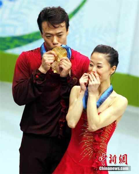 2010年2月15日,温哥华冬奥会花样滑冰双人自由滑比赛,中国选手申雪、赵宏博圆梦折桂。中新社记者 盛佳鹏 摄