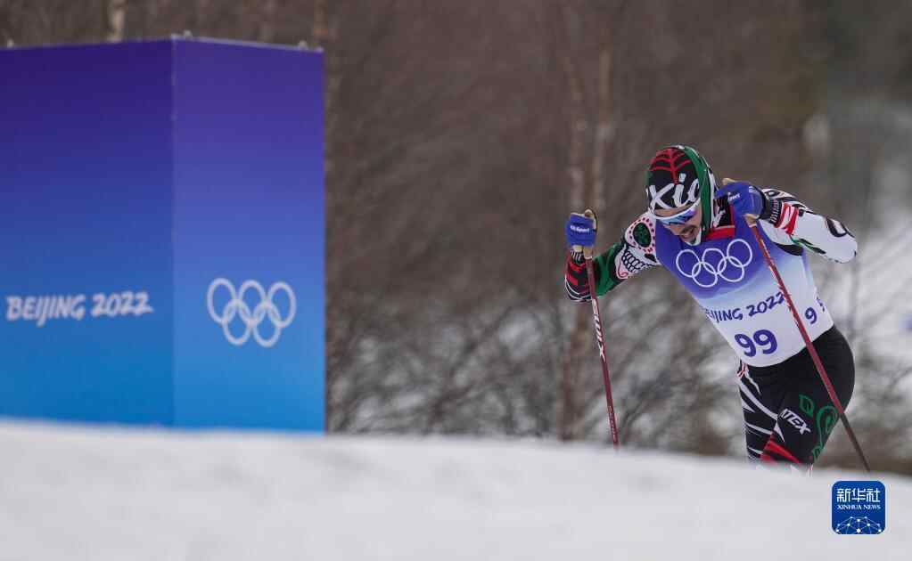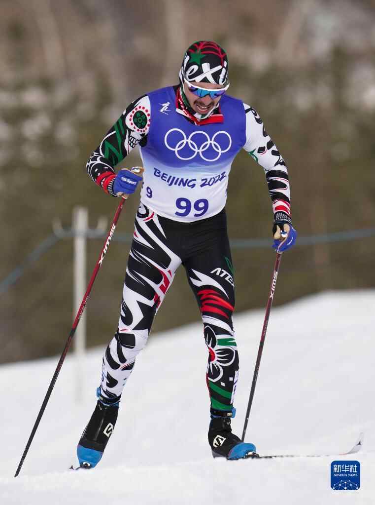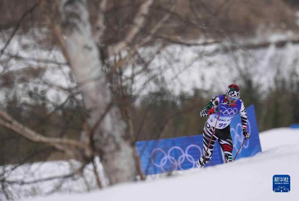 墨西哥运动员乔纳森·索托·莫雷诺在北京冬奥会越野滑雪男子15公里(传统技术)的比赛中(2月11日摄)。