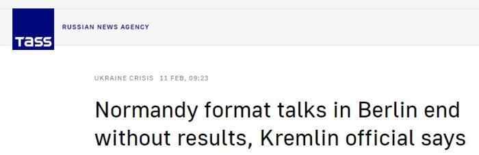 2月11日消息,俄方称,新一轮“诺曼底模式”会谈无果而终。图片来源:俄罗斯塔斯社报道截图。