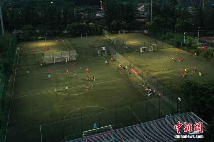 航拍南昌市国体足球公园,夜间足球场地的开放,成为市民夜间运动健身的好去处。刘占昆 摄