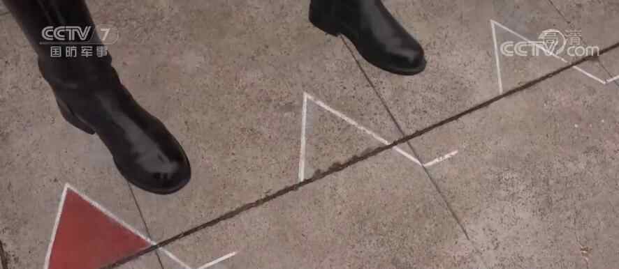 训练中,像这种角度、距离的微调每天都在变化,差一厘米都不行。每调整一次,战士们就要重新定位训练。和以往升旗任务相比,这次最大的变化是挥旗的动作,因为开幕式现场升旗台位置的朝向问题,改变了挥旗的方向。