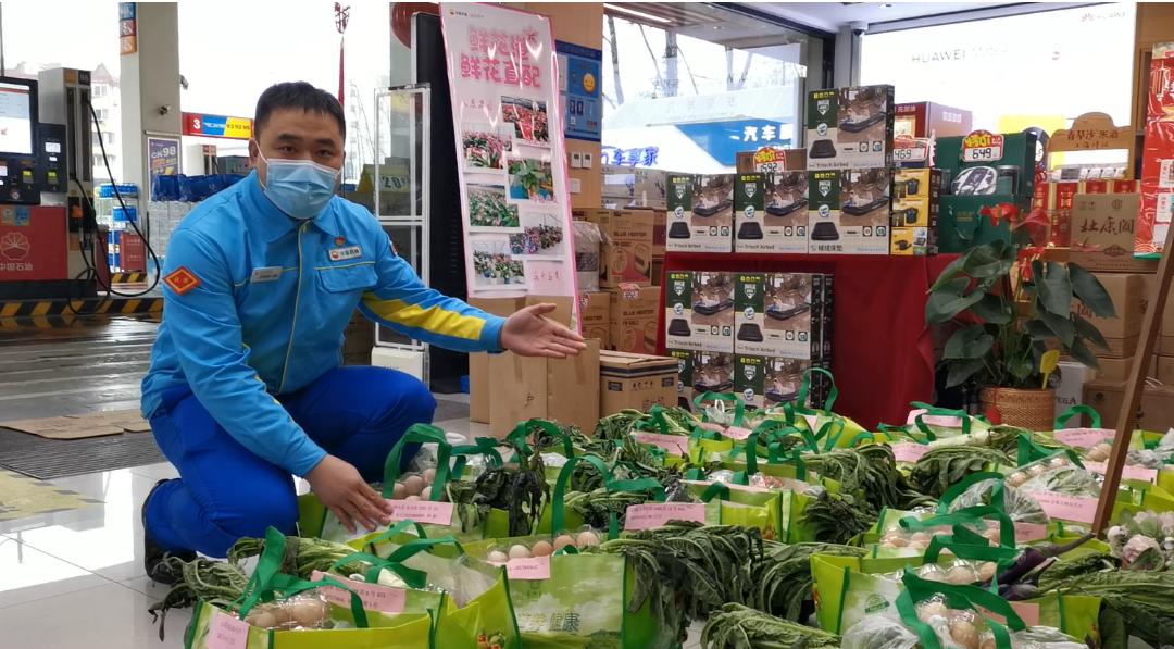 3月28日以后,按照防疫政策要求,加油站员工不能再离站配送,居民们急迫的问询让他牵挂。后来,他在公司的支持下,开始采用线上集单、第三方定点配送、社区无接触分发的方式继续为居民服务。苏国明把居家的员工组织起来,分工负责订单接龙、对接供应商和社区、售后服务,确保每一单都得到落实。