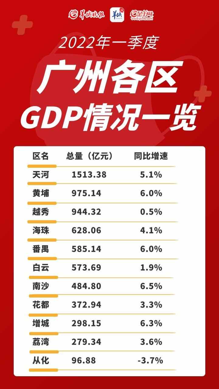 2022年一季度广州各区GDP情况一览表