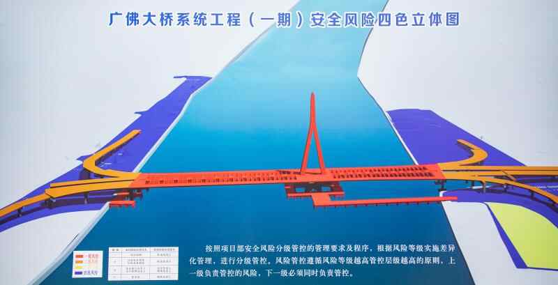 据介绍,广佛大桥是独塔中央索面钢-混组合梁斜拉桥,其建设过程涉及水上作业、大件吊装、深基坑、高支模、斜拉索等重大方案,还具有制作安装精度要求高、重型吊装作业量大、协调工作接口多等特点。