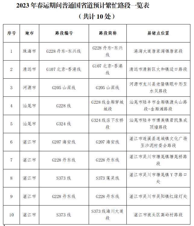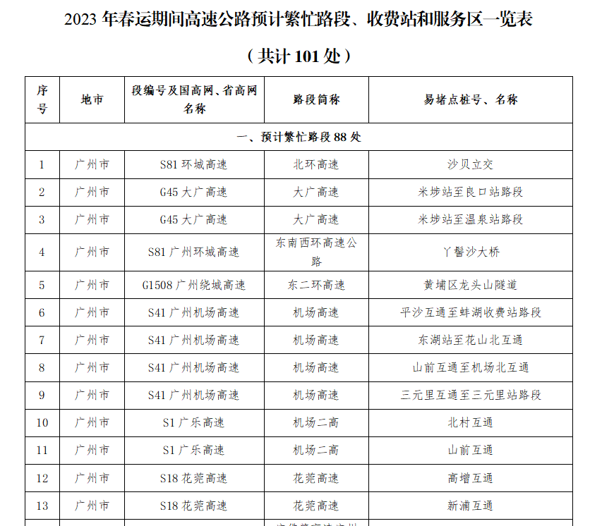 2023年春运期间高速公路预计繁忙路段、收费站和服务区一览表