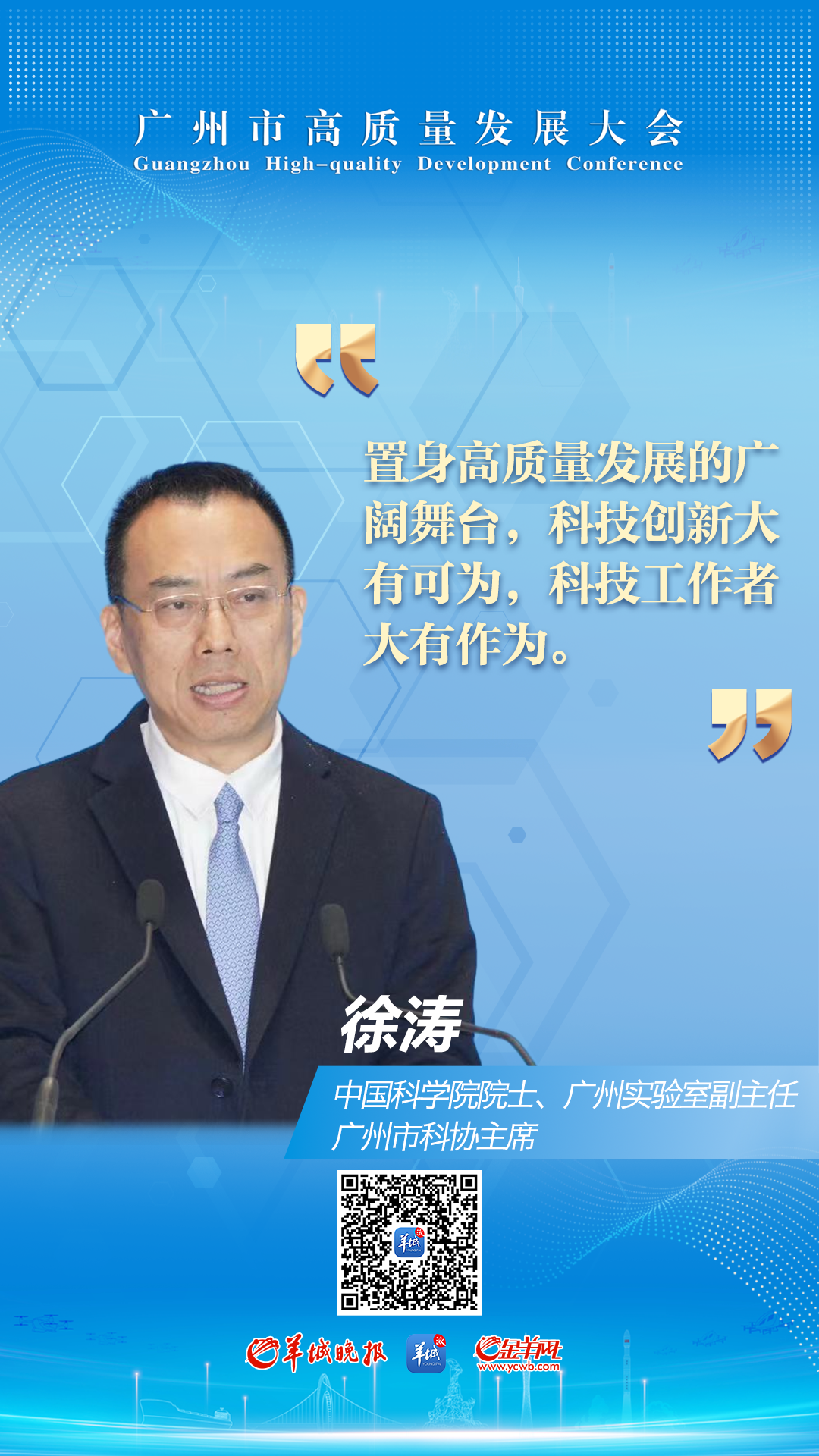 2月19日下午,广州市委、市政府召开全市高质量发展大会,聚焦产业科技话创新、谋未来。在大会上,中国科学院院士、广州实验室副主任、广州市科协主席徐涛表示,广州实验室将立足战略使命及“总平台”“总链长”定位,聚焦呼吸系统疾病及其防控领域,锚定“排头兵、领头羊、火车头”标高追求,促进产业和科技互促互强。“置身高质量发展的广阔舞台,科技创新大有可为,科技工作者大有作为。”