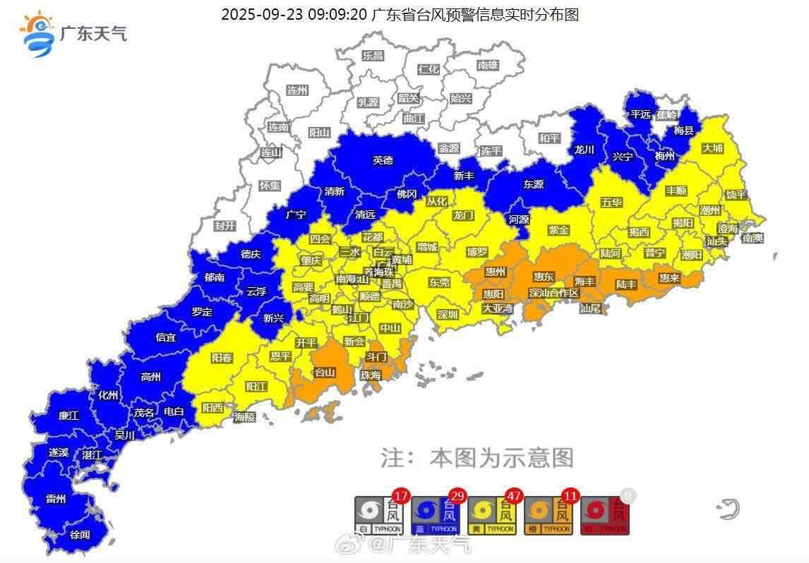 9月23日12时起:广东省内高铁及普速列车开始逐步停运,停运范围随台风影响动态调整;