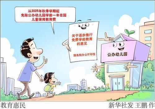 据新华社报道,《意见》强调,将按照强化普及普惠、稳妥有序推进、加大政府投入、经费合理分担的原则,逐步免除学前教育保育教育费,有效降低教育成本,提高基本公共教育服务水平,办好人民满意的教育。其中明确,从2025年秋季学期起,免除公办幼儿园学前一年在园儿童保育教育费。