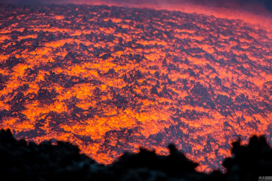 当地时间2017年3月27日,意大利西西里,埃特纳火山喷发,红色岩浆流向山谷。 barcroftmedia/视觉中国