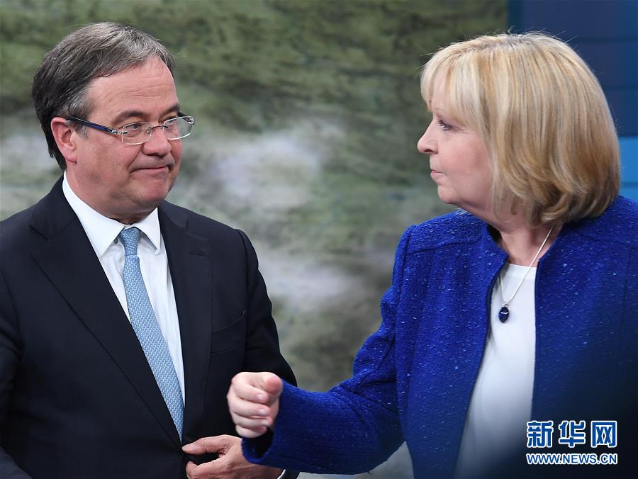 5月14日,在德国杜塞尔多夫,北威州州长、社会民主党(社民党)北威州主席克拉夫特(右)与基督教民主联盟(基民盟)北威州领导人拉舍特出席电视辩论。据德国媒体报道,出口民调显示,德国总理默克尔领导的基民盟在14日举行的德国北威州选举中得票率领先。分析人士认为,北威州选情对于2017年9月的德国大选有一定的指向作用。新华社/路透