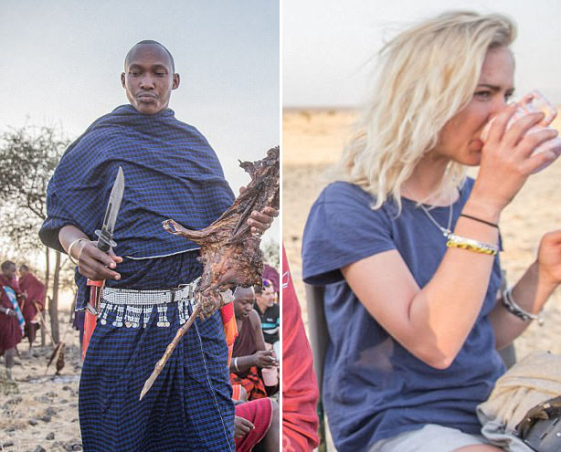 牛血汤。去别人家做客,按理说出于礼貌,应该将主人提供的食物品尝一番,但去坦桑尼亚的马赛玛拉部落时,赛迪的内心无疑是拒绝的,因为主人为她准备的是一种绿色的牛血汤。一问才知道,那些绿色原来是牛胆汁。无奈之下,她尝了一口,一种酸臭的牛肉味和苦味刺激着她的味蕾,那感觉真是终身难忘。