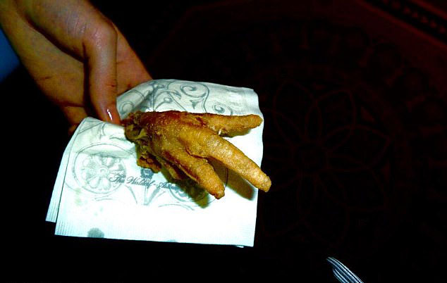 鸡爪。赛迪曾经尝试过炒鸡爪,她说看到这些鸡爪会让她联想到鸡用力抓地时的情景,对她而言,吃鸡爪还是可以接受的,但是她不觉得鸡爪有任何营养。