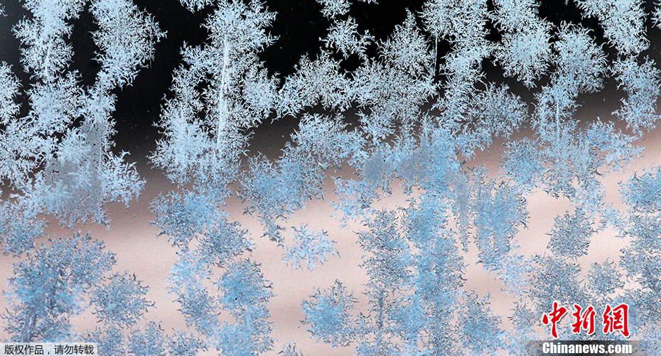 2010年,德国海德堡遭遇寒潮,一块玻璃上结出了漂亮的冰花。