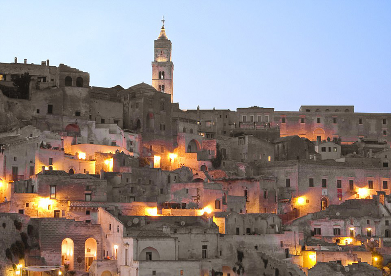意大利南部地区巴斯利卡塔的马泰拉村(Matera)有一大片人工开凿的山洞,已有9000年历史,至今仍有人类居住。