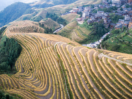 航拍稻谷收割后的龙脊梯田 曲线纵横蔚为壮观【2】