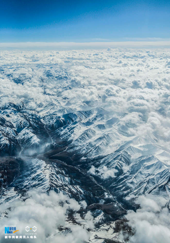 壮美河山!万米高空俯瞰雪后巴颜喀拉山