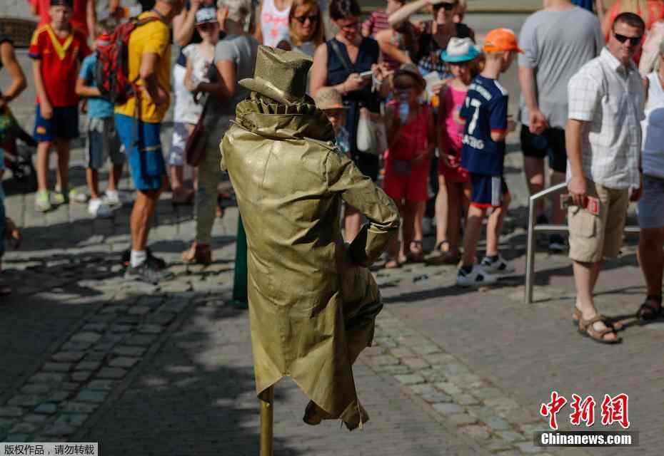 当地时间2018年7月22日,比利时法梅恩地区马尔什,当地庆祝“Statues en Marche”节,艺术家变身“活雕塑”。