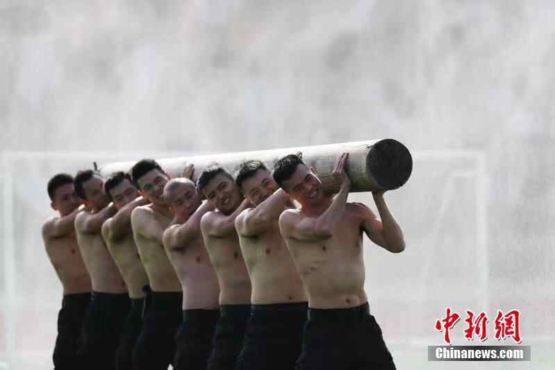 12月3日,成都市公安局特警支队黑豹突击队在成都公安战训基地开启“冬训”全封闭“魔鬼式”大练兵。此次“冬训”全封闭练兵,以全天候、实战化、精准化需求为导向,在坚持自训基础上,引入高级教员授课,并通过夜间紧急集合、长途行军跋涉、丛林搜捕等超常规训练手段,有效提升黑豹突击队全天候、多地形的快速反应、应急机动等能力和水平。图为托举200公斤圆木训练。唐琪摄
