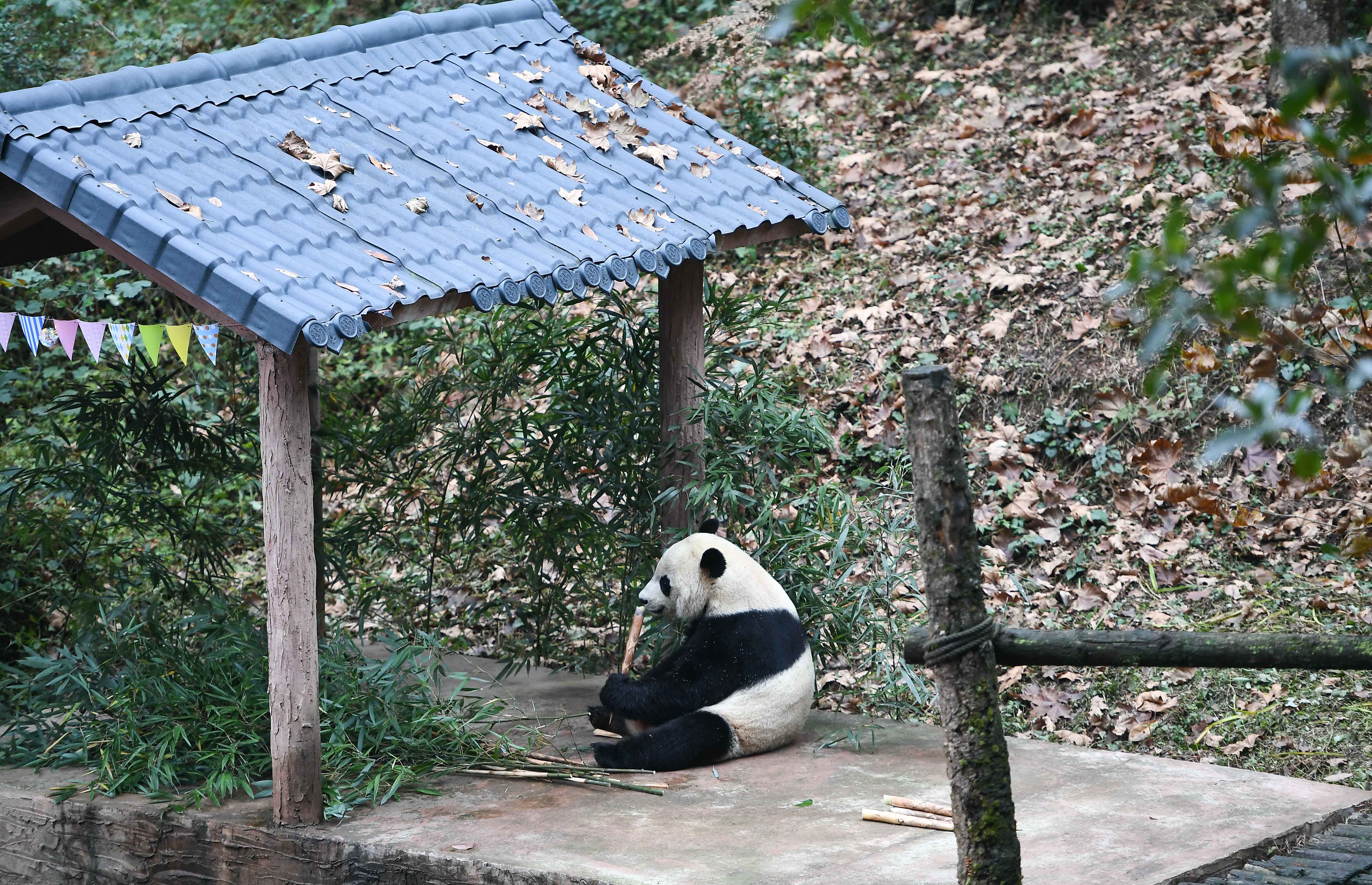 “贝贝”将在一个月的隔离检疫期结束后,与公众正式见面。11月21日在中国大熊猫保护研究中心雅安碧峰峡基地拍摄的大熊猫“贝...