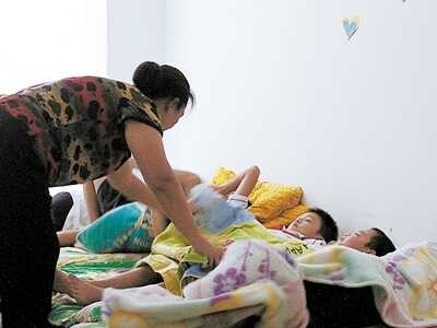 中午放学后,孩子们排队去校外午托班吃饭、睡觉