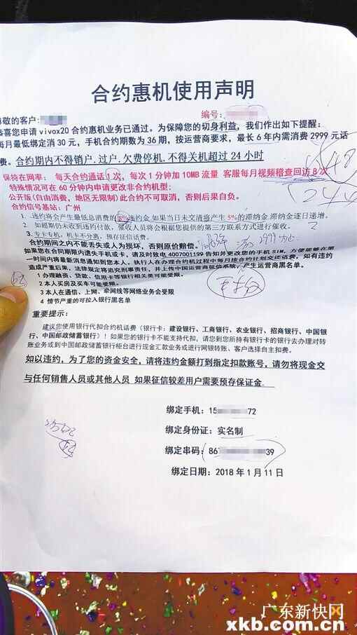 投票后,店员表示可以为西西查询手机积分,随后告诉她积分足够以29元购买合约机,付款后即可拿走手机。然而,在西西付款并签字确认后,店员却拿出另一张使用声明,要求她保证手机在广州市内使用,必须保持4G在网,必须接听回访视频,机卡不得分离等等。
