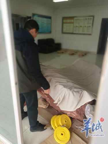 记者近日在该体育馆看到,这一窝化石被放在了一个办公区域大门口朝室内位置。石头被分割成了两块,上面那一块像一个盖子,打开后露出了十四枚恐龙蛋化石的面貌,记者看到一个个化石蛋上的皮壳层次分明,品相完好,如同镶嵌在红沙石里面,还是有一定的观赏价值。石头下面放在两块木板做底架,平时就盖着一张布防尘。