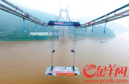 清云高速建设新进展 西江特大桥首节钢箱梁成功吊装