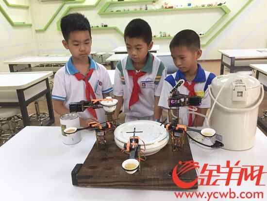 今年5月下旬,这款“冲泡工夫茶神器”在广州举行的第十八届广东省青少年机器人大赛中,获得创意项目类第一名,成功获得代表广东省参加7月19日-24日在贵州举行的第18届中国青少年机器人竞赛暨2018世界青少年机器人邀请赛的资格。而在23日下午,3名学生的指导老师赵世僖就从贵州比赛现场向羊城晚报记者发来喜讯:“工夫茶茶”项目代表广东出征第十八届中国青少年机器人竞赛,表现出色,不负众望,勇夺创意比赛项目小学组一等奖的好成绩。