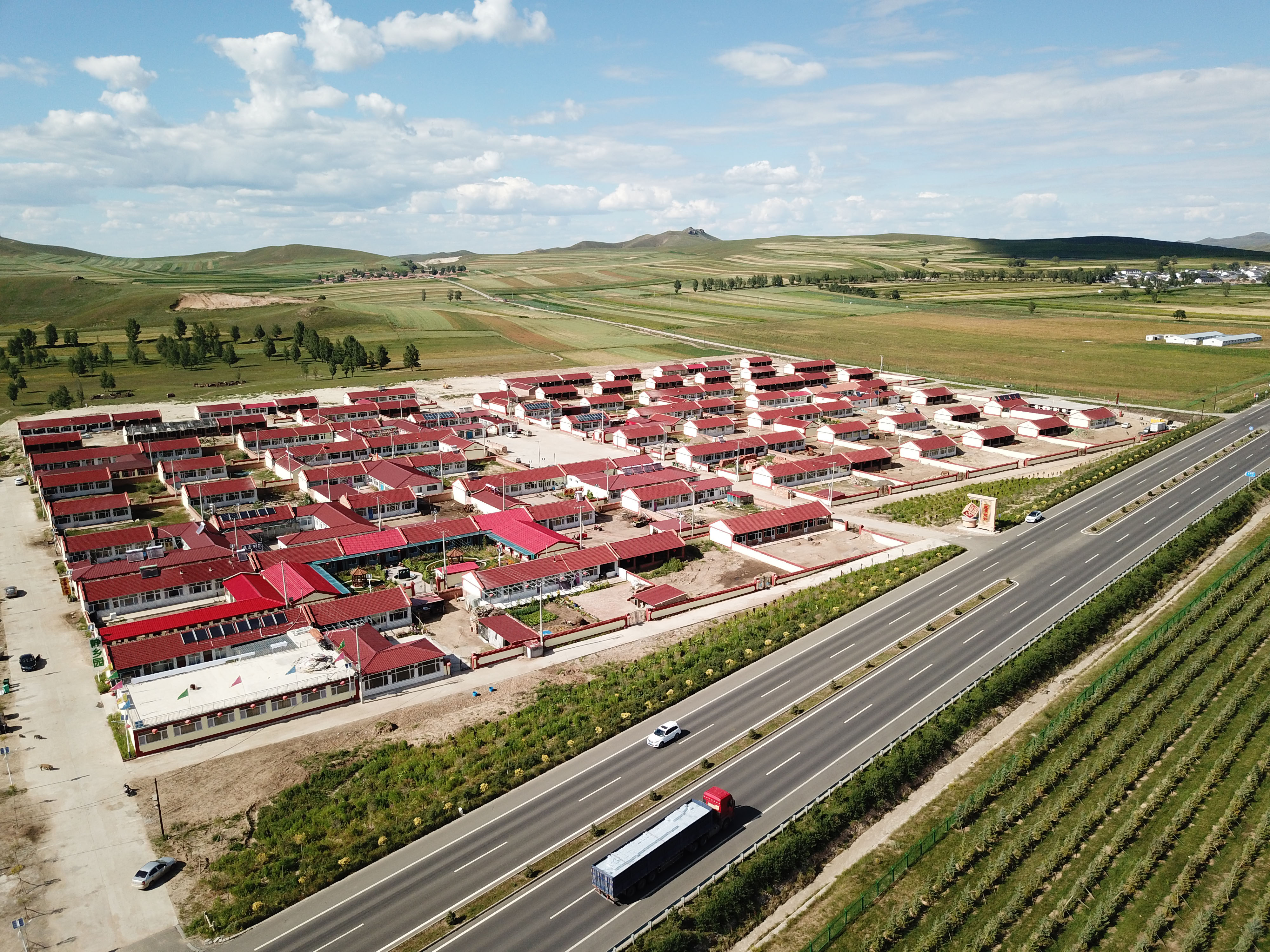 ↑这是8月24日拍摄的丰宁满族自治县大滩镇依托坝上景区发展起来的旅游新村(无人机拍摄)。