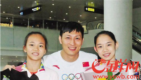 ■花都姐妹花的启蒙教练任升平周六在机场接机后与爱徒合影。通讯员供图