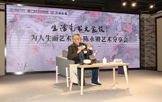 金羊网讯 记者黄宙辉、通讯员何丹报道:2月23日,岭南著名花鸟画家、中国画学会副会长、广东省中国画学会会长陈永锵现身289艺术园区广州文艺市民空间,在“生活艺术大家谈”活动上,以“为人生而艺术”为题分享数十年来绘画心得与艺术人生。他主张,“要为人生而艺术,而不是为艺术而艺术”;“艺术应当与众生合唱”,不要创作那些谁都看不懂的作品。