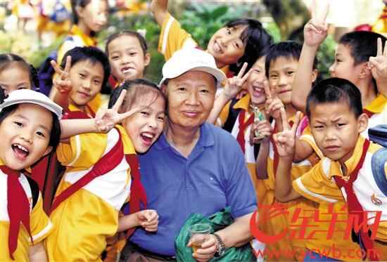2006年,卢永根在湛江湖光岩与当地小学生合影