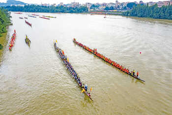 记者看到,参加此次蚌湖景自由竞渡的龙舟,除了本地龙舟,还有来自鸦岗等其他兄弟村的传统龙,仅传统龙就达到了13条,加上标准龙,此次参与竞渡的龙舟共有28条。