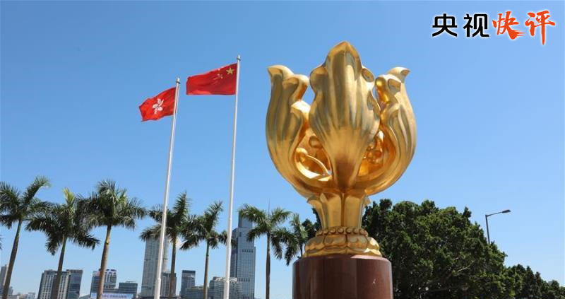 《新闻联播》播发央视快评《五星红旗永远在香港高高飘扬》。
