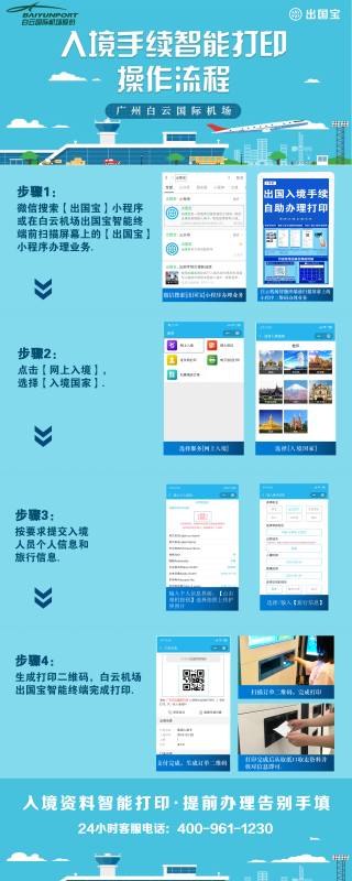 金羊网讯 记者唐珩报道:8月26日,广州白云机场投用“出国宝”国际旅行入境手续办理系统,可帮助出国旅客快速办理相关国家入境卡、落地签申请表、海关申报单等入境手续,免去旅客在飞机上或到达后手动填写的麻烦。目前,该系统可办理入境手续的有韩国、印度尼西亚、日本、新加坡、泰国、越南、老挝、摩洛哥、美国、柬埔寨、菲律宾等11个国家。这是白云机场深化“智慧机场”建设、便捷旅客出行的又一新举措。