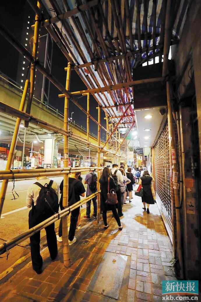 ■10月13日,受暴力事件影响,港铁提前停运,更多市民选择巴士出行。在巴士站等候的市民排起了长队。新华社发