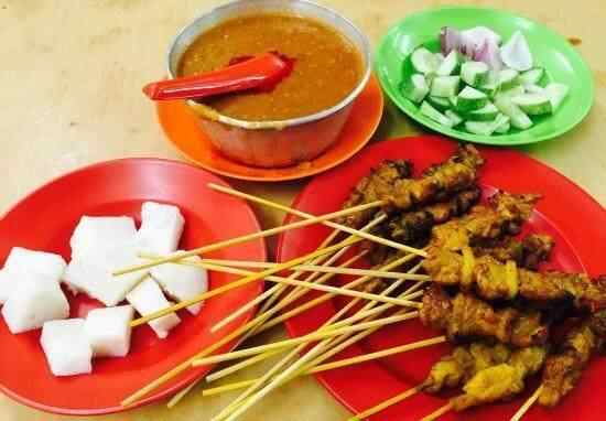 22、沙爹肉串 沙爹其实就是马来西亚版本的烤肉串,跟我们平时吃的烤串区别主要是腌料和蘸料。腌料是花生、椰浆、幼虾等的打碎后调制,蘸酱主料是花生,口感甜中带辣多层次。再搭配小黄瓜、洋葱和米饭,完全停不下来。