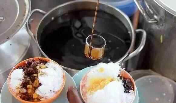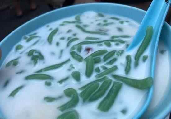 36、煎蕊 这道马来西亚有名的甜品,据说缘起于潮州,在槟城有很多。米磨成粉制成的煎蕊,搭配香糯的红豆,佐以凉爽的椰浆。香甜可口,清凉解暑。