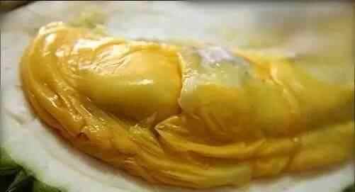 25、猫山王榴莲 有“水果之王”之称的顶级榴莲猫山王,必须得是自然成熟之后自己掉落在地上的。大多都有裂口,必须得当天吃掉,完全没办法出口。美貌饱满的姜黄色,凝脂一般的质地,甘甜、嫩滑的口感,绝对让你吃完还想来第二块。