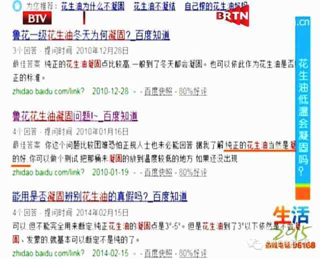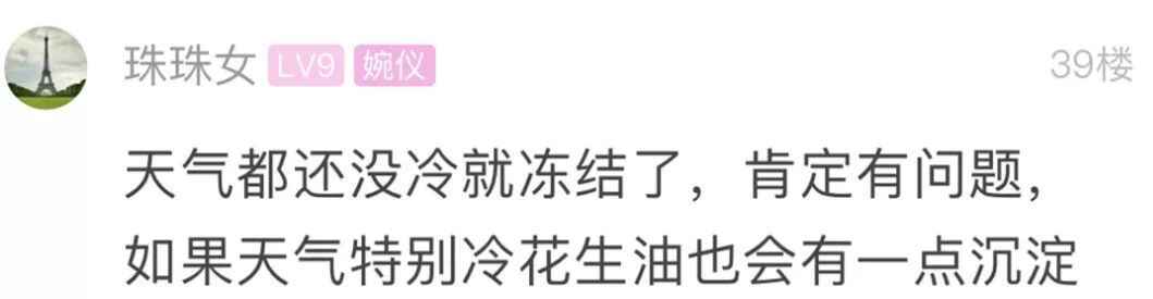 记者到网上搜索发现,大家对花生油是否凝固,说法不一: