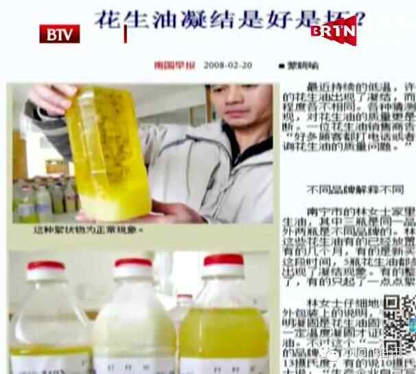 冬季到了,纯正花生油在低温环境下会凝固,是很多消费者的生活经验。