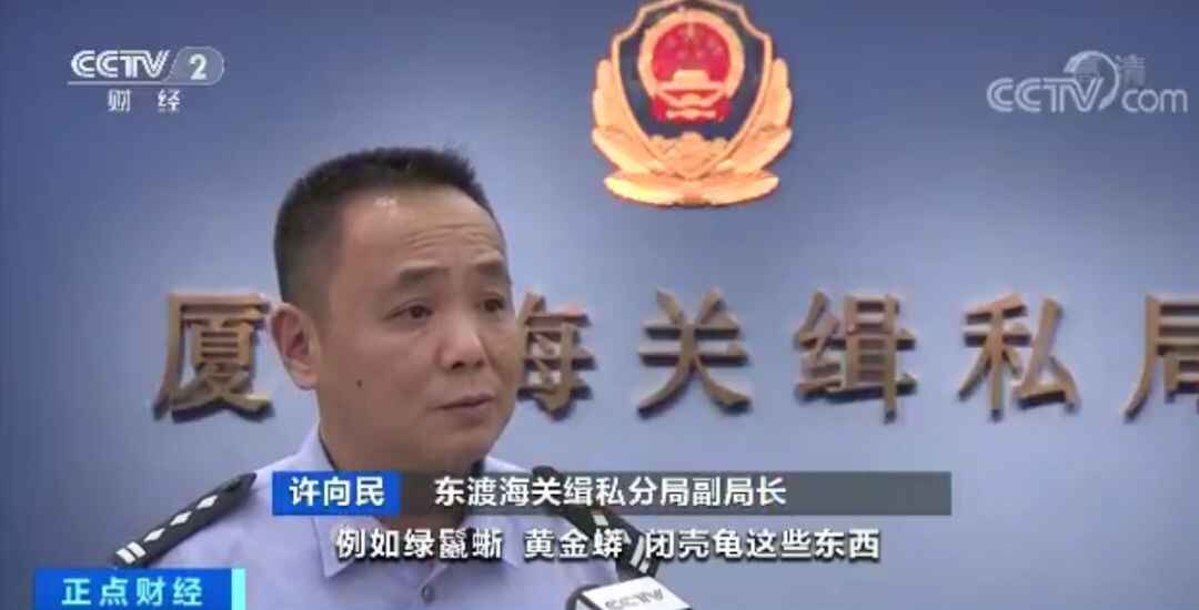 东渡海关缉私分局副局长 许向民:开始的时候就开始养一些宠物,例如 绿鬣蜥、黄金蟒、闭壳龟 这些东西,然后他们后来发现,从境外购买可以有很大的利润空间,他们自己养着宠物,然后又能够赚到钱,他们感觉自己能够 满足自己的虚荣心。