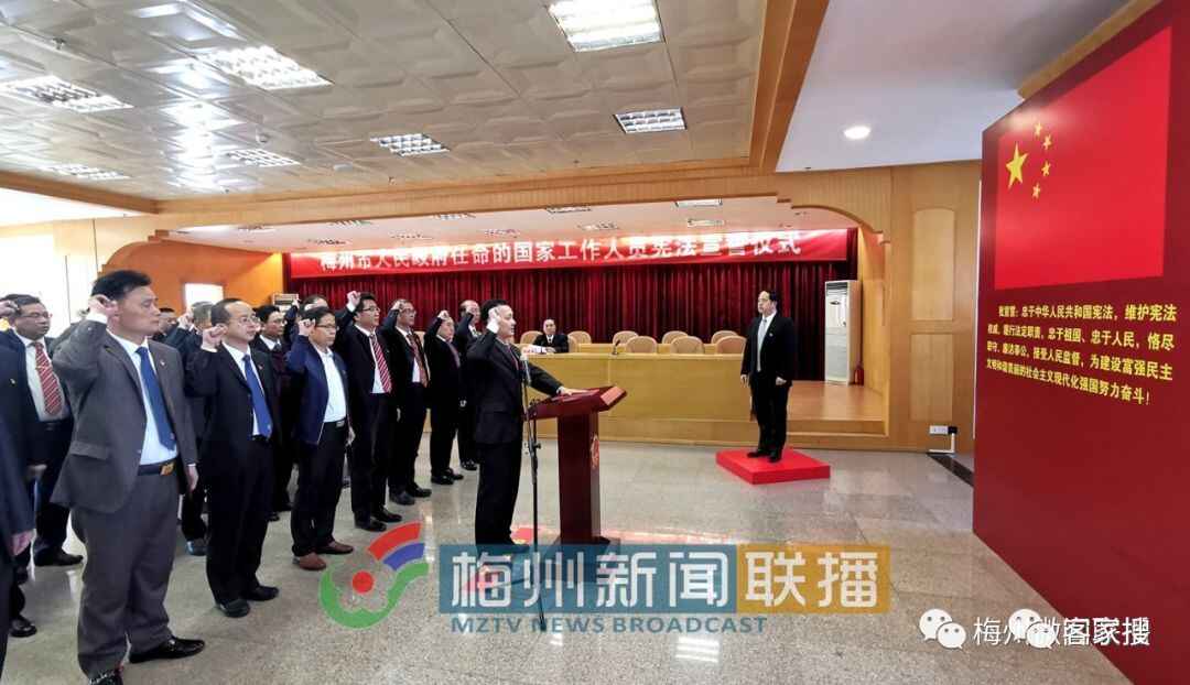 据梅州微闻联播12月3日消息,今天下午,梅州市人民政府举行宪法宣誓仪式。30位市政府近期任命的国家工作人员向宪法宣誓,向人民承诺。