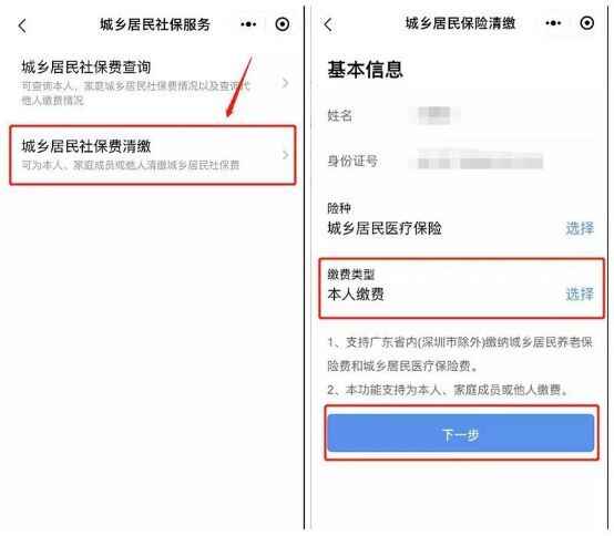 点击“城乡居民社保费清缴”,缴费类型选择“本人缴费”,并点击“下一步”,选择缴费记录,点击“缴款”即可。