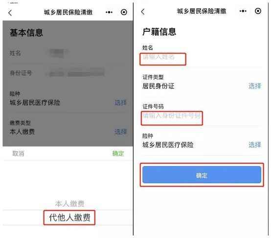 点击“城乡居民社保费清缴”,缴费类型选“代他人缴费”,输入被代缴人姓名及身份证号码,点击“确定”,点击“缴款”即可。