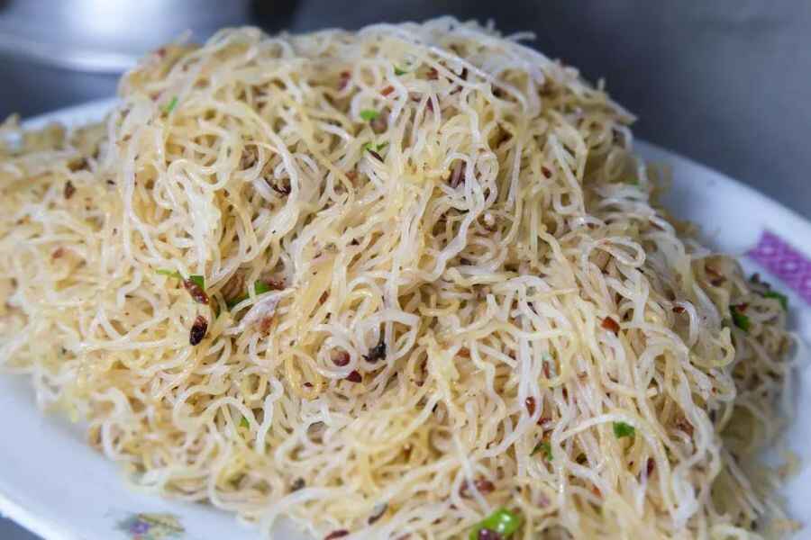 鱼散粉选用鲮鱼作为主要的材料,鲮鱼不同别的鱼,它的肉质鲜美,煸炒过的鱼肉又香又酥,搭配软糯的米粉是绝佳。不过,一道完美的食品少不了其他食材的配搭。鱼散粉的原材料主要有:鲮鱼、米粉丝、花生油、酒糟、姜、葱、鱼露、胡椒粉。