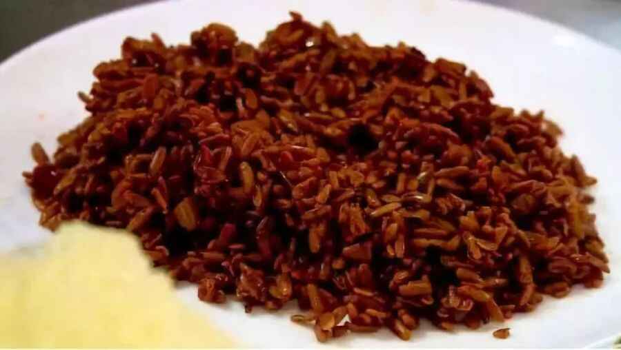 6、不停地翻炒(可以用锅铲,也可以用两双木筷子)直至色泽金黄,调味均匀。