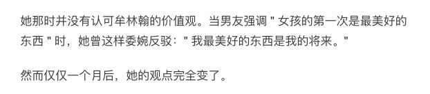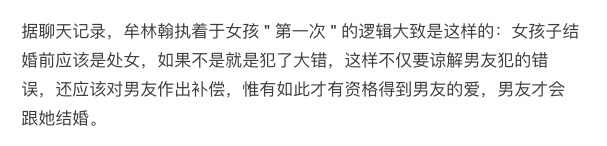 “女孩结婚前就应该是处女,否则就是犯了大错,否则就应该对男友做出补偿。”