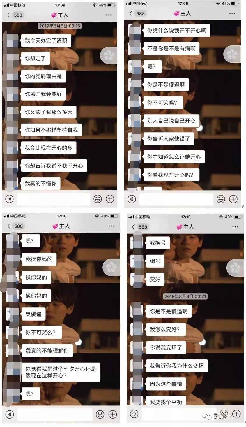 第二件,给男朋友牟林翰(她备注牟林翰为“主人”,牟林翰有时称她“狗狗”,有时叫她“妈妈”)发了3条微信,